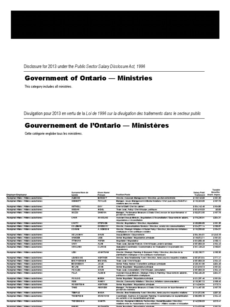 Ontario Sunshine List Ministries 2013 Procureur General Procureur